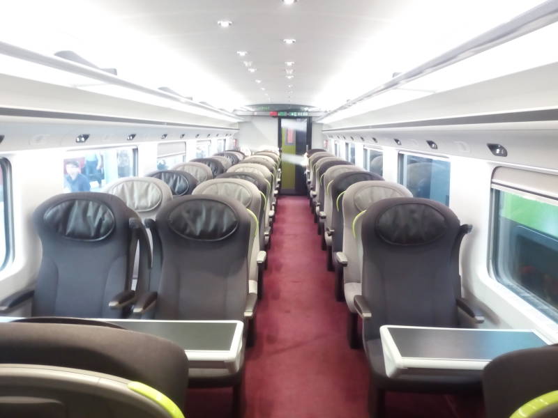 De plaatsen in de Standaard worden verkocht vanaf 19 euro enkel (dat is altijd zo op dinsdag, woensdag en donderdag) en omvat een gewone hogesnelheidsstoel. Deze zitten gemakkelijker als de gemiddelde zetel in de gemiddelde trein. Ze zijn vrij smal, maar zeker groot genoeg voor de meeste mensen onder ons. De plaatsen in Standaard XL (vanaf 29 euro) zijn zoals die van een eerste klasse TGV of Eurostar. Zeker de moeite om eens te doen als men eens goedkoop in eerste klasse wilt rijden. De plaatsen zijn ruim, heeft ruime tafels en een europese stekker en een britse stekker per 2. De vraag is nu altijd: is de XL zijn meerprijs waard. Ik zeg nu van ja! Ik ben nu ook met mijn laptop bezig en dan is een beetje extra plaats altijd mooi meegenomen.