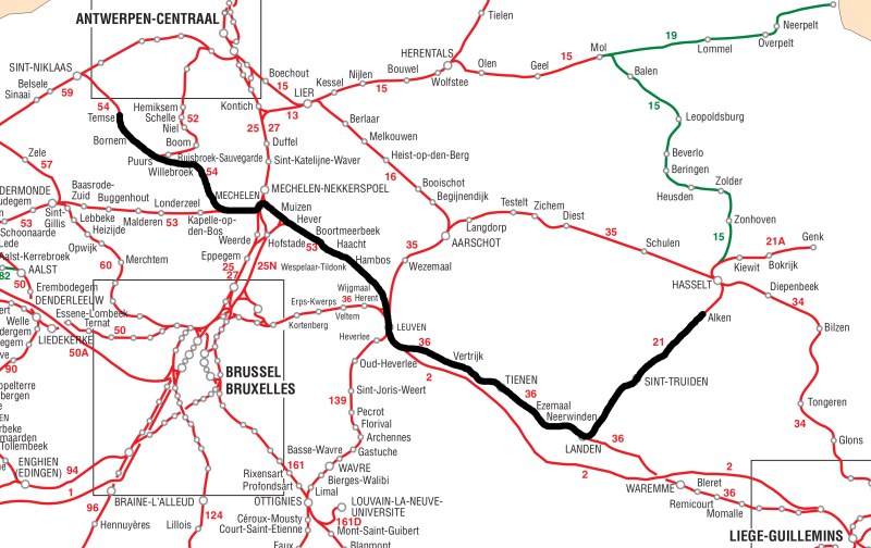 De trein had haltes in Temse, Bornem, Puurs, Willebroek, Mechelen, Muizen, Hever, Boortmeerbeek, Haacht, Wespelaar-Tildonk, Hambos, Wijgmaal en Leuven.