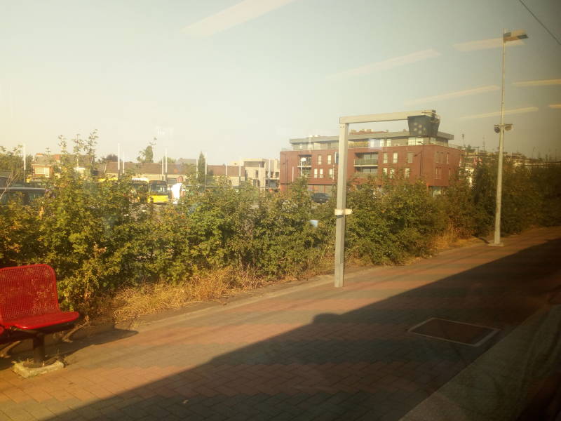Het tweede deel van de reis was op een snikhete piekuur naar Genk. Deze M4 heeft waarschijnlijk de hele dag in de zon gestaan in zijn depot en was verschrikkelijk heet. Gelukkig dat het nog maar 50 minuten meer was, met haltes in Tienen, Landen, Sint-Truiden en Alken, waar ons vakantieverblijf was.