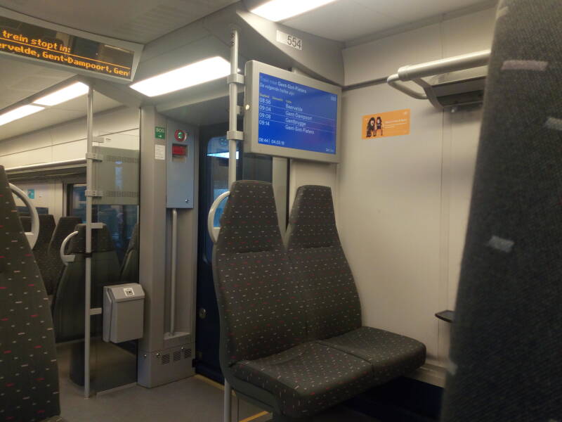 Aangekomen in Gent-Dampoort passeren er eerst nog een aantal treinen, zowel goederen als lege reizigerstreinen, voordat de trein naar Eeklo komt.