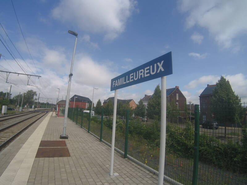 In Braine-le-Compte neem ik de stoptrein richting La Louvière, maar stap al af in Familleureux. Deze trein, bestaande uit een klassiek motorstel, hield nog halt in Ecaussinnes, Marche-Les-Ecaussinnes en Familleureux. Eindelijk kan ik twee nieuwe haltes van de lijst schrappen. De reden voor de overstap in Familleureux is dat ik zo een langere middagpauze heb om te eten. Door de mondmaskerplicht is het namelijk niet mogelijk te eten op de trein of op het perron.
