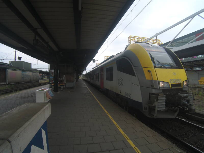Van zodra de fiets op slot ging, ging het mondmasker op en kon ik wachten op de eerste trein van de dag die me naar Gent-Sint-Pieters zou brengen. Deze trein, bestaande uit één MS08 Desiro-stel, stopte nog in Gent-Dampoort en Gentbrugge.