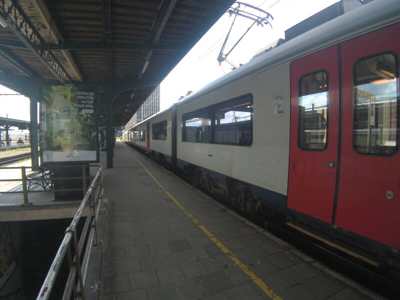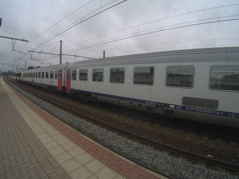 Eenmaal David was toegekomen, reden we met de eerste trein naar Brussel-Zuid via het snelspoor 50A. Deze rit werd voorzien door een M6 rijtuig.