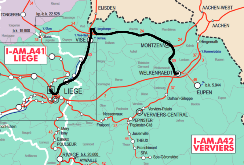 Door werkzaamheden tussen Luik en Verviers konden er geen treinen gebruik maken van dit stuk spoor. De IC treinen Kortrijk - Welkenraedt werden ingekort tot Luik en de IC treinen Oostende - Eupen werden omgeleid langs spoorlijnen 40, 24 en 39. Zie het kaartje hieronder voor de route van de omleiding. Reizigers tussen Luik en Verviers konden gebruik maken van een vervangbus.