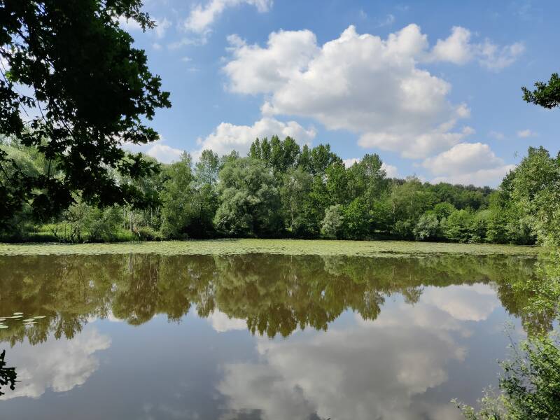 Tot hier was het mooiste deel van de wandeling. De terugweg doorheen het bos en langs de straten van Testelt waren minder mooi dan de heenweg. We passeren nog een mooi vijvertje waar men met een laag brugje over stapt en komen dan snel weer bij het station terecht. Natuurlijk heb ik net mijn trein gemist, maar dit is dan de uitgelezen kans om mijn boterhammen op te eten en wat treinen te spotten op de lijn (die deel uit maakt van de Montzenroute van Antwerpen naar Duitsland).