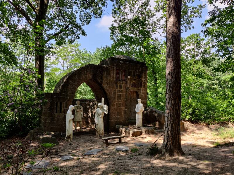 Na de visvijver komen we weer op de openbare weg terecht. Deze werd gevolgd tot aan de abdij van Averbode met een klein ommetje doorheen het Mariapark waar men veel beelden kan zien die de 7 staties van de O.L.V. van Smarten voorstellen. In het midden is er ook een Lourdesgrot. Nadat we uit dit park waren gewandeld, kan men niet anders dan stoppen aan de Lekdreef. Hier kan men genieten van een lekker ijsje, en dat heb ik zeker niet afgeslaan op zo'n warme dag.