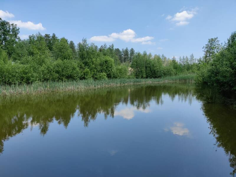 Het is dan ook na de vogelkijkhut dat ik even van de wandeling ben gegaan, richting een geocache die in de buurt te vinden is. Ik raad eigenlijk iedereen het omwegje aan, want je gaat hier weer door een prachtig stukje natuur. Het gaat over een houten pad waarbij men over het moeras wandelt.