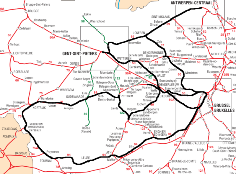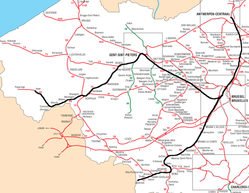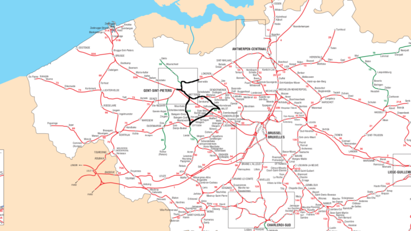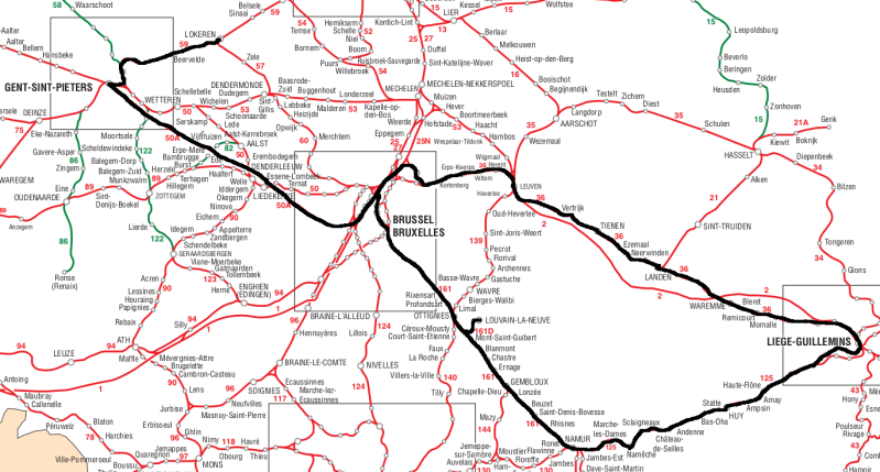 - Spoorlijnen: 59, 50, 53, 25, 0, 124, 117, 116, 112, 130, 125, 36, HSL2, 35, 16, 15 en 27